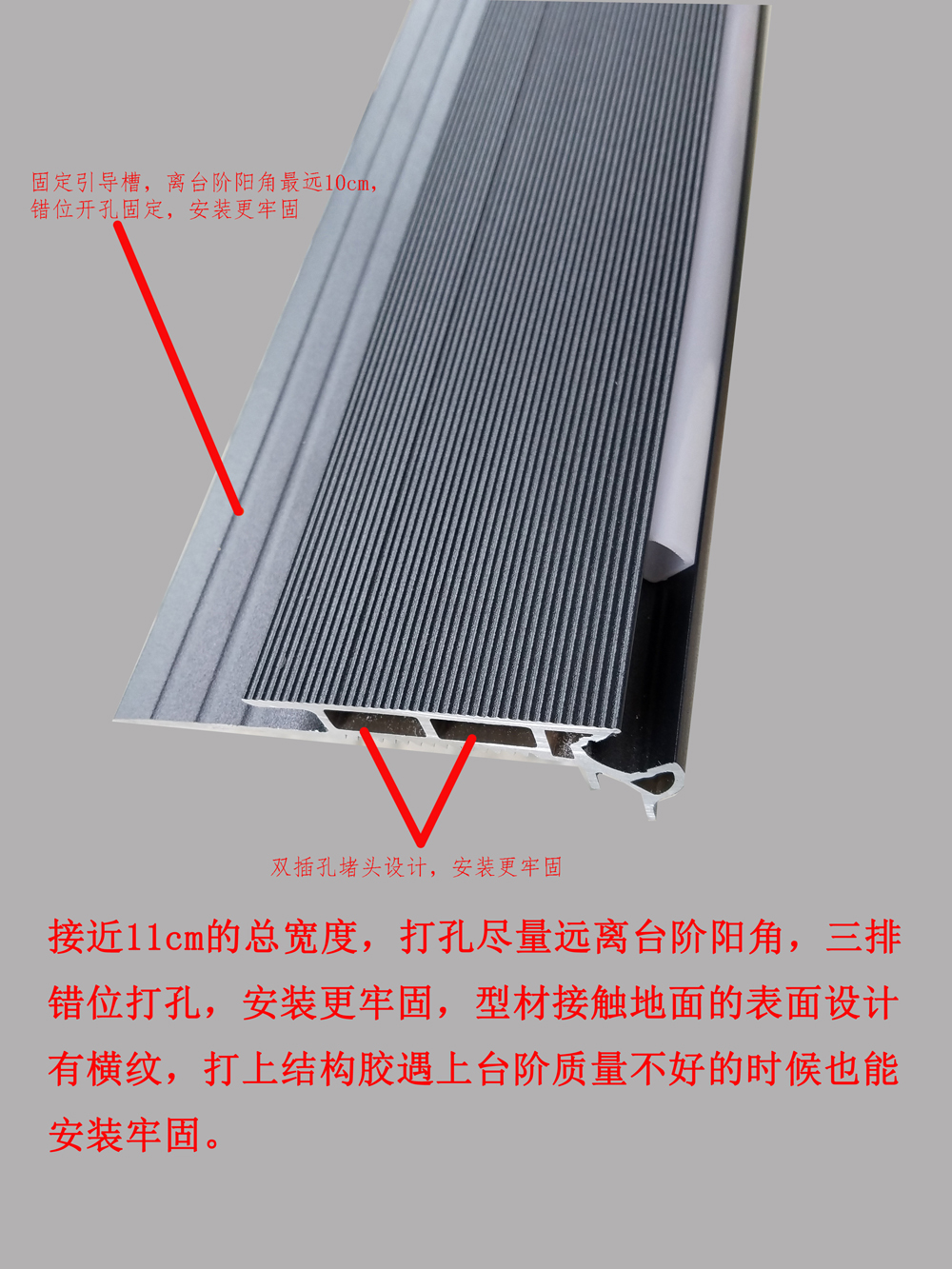 与铝材之间可以实现无缝安装,避免漏出水泥地面、地毯等情况。