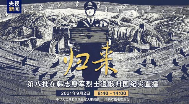 9月2日,也就是今天的8点40分,第八批在韩志愿军遗骸将回到祖国。英雄经历了半个多世纪的埋骨他乡,终于魂归故里。